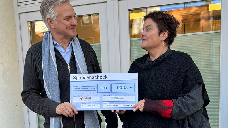 Die KOSMOS Apotheke Bremen verzichtet auf die alljährlichen Kalender-Werbegeschenke und spendet stattdessen an gemeinnützige Einrichtungen in der Region. Die KOSMOS Apotheke Bremen ist bekannt für ihren Fokus auf Nachhaltigkeit und Gemeinnützigkeit.